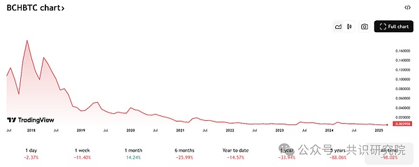 从市值角度,在2018年,巅峰时期的BCH兑换BTC的比率约为0.18;而现如今每BCH仅能兑换约0.004的BTC。由此可见,BCH的区块容量调整方案已逐渐被比特币社区抛弃。