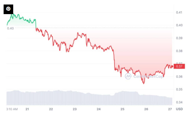 考虑到新建立的阻力位在 0.37 美元附近,由于突然出现看跌势头,ADA 似乎已经锁定了下周可能会出现的价格下行轨迹。过去一周,Cardano 价格下跌 7.52%。