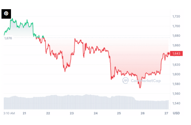 以太坊偏离了近期在价值加速之前在本周早些时候失去价值的趋势,似乎已经重新进入修正交易轨迹。然而,随着以太坊在周末开始向上移动,未来一周可能会让以太坊重新测试 1,700 美元区域并推高。总体而言,以太坊上周下跌了 1.89%。