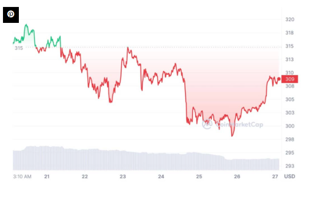 过去一周,BNB 再次出现大幅波动。以 315 美元进入本周,BNB 价格保持在其 7 天均线上方并推向 320 美元区域。然而,在 21 日,BNB 受到巨大波动的影响,在 7 天 SMA 门槛上下波动,然后逐步下跌至 305 美元。23 日为 BNB 提供了一些喘息的机会,使其能够向其 7 日均线的风口浪尖移动,然后再次恢复逐步下降趋势。这导致BNB 价格暴跌至 300 美元以下并达到每周低点 298.13 美元。