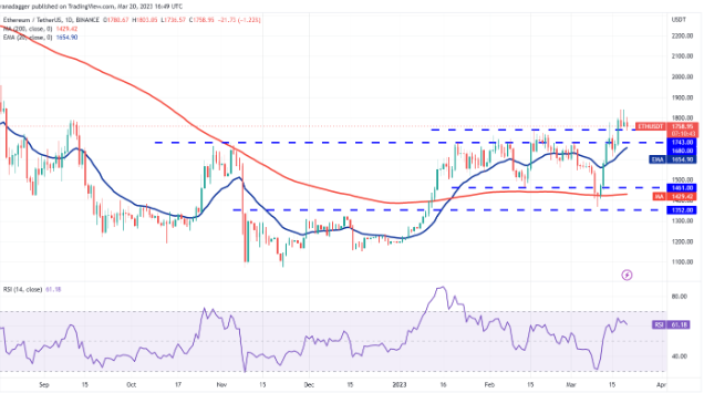 高于 3 月 18 日和 19 日的 1,800 美元阻力位,但无法维持较高水平。这表明空头正试图阻止复苏。