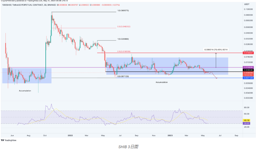 同样,自 2022 年 5 月开始以来,目前SHIB 价格的盘整已经持续了一年多。RSI 最近进入超卖区域。这表明在 SHIB 催化爆炸性上涨之前还有时间。假设 RSI 继续上涨,SHIB 价格的短期目标是 0.0000106 美元。除了这个障碍,SHIB 也有可能标记 0.0000186 美元的阻力位。总的来说,这一举措将意味着增长 117%。