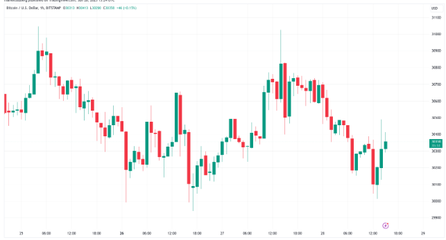 因此,比特币显得犹豫不决,回吐了前一天的涨幅,避免再次冲击年度高点 31,000 美元。