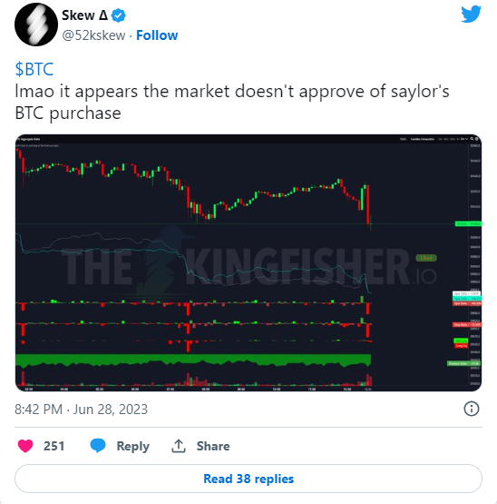 经首席执行官 Michael Saylor证实,该公司宣布已在其储备中增加 12,333 个 BTC(当时价值 3.47 亿美元),使其总成本基础达到每 BTC 29,668 美元。