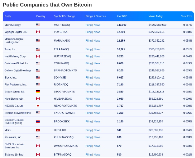 根据监控资源Bitcoin Treasuries 的数据,MicroStrategy 目前拥有整个潜在 BTC 供应量的近 0.7%。