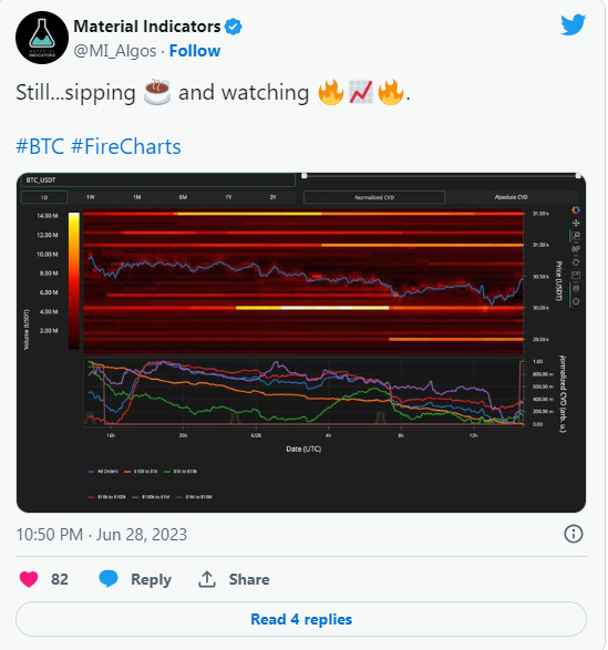 比特币由于美联储在通胀问题上保持强硬立场,美联储于 6 月 28 日再次重新测试 30,000 美元的支撑位。